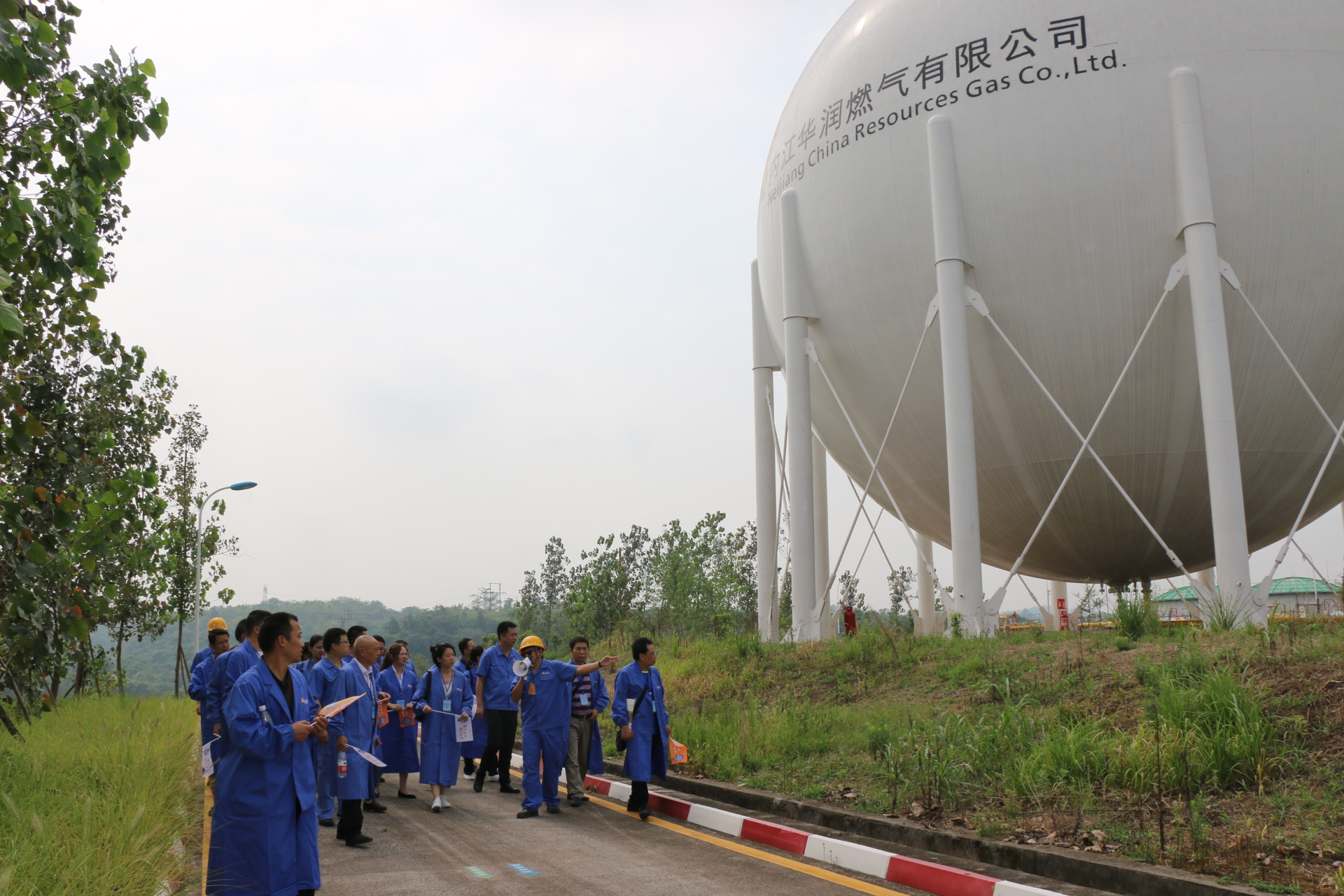 第二階段為實(shí)地參觀華潤燃?xì)庥邢薰境俏魈烊粴鈨?chǔ)配站。按照規(guī)定,大家將手機(jī)和其他火種進(jìn)行了統(tǒng)一存放,穿上了防靜電服,并通過觸摸靜電釋放裝置釋放了身體靜電。