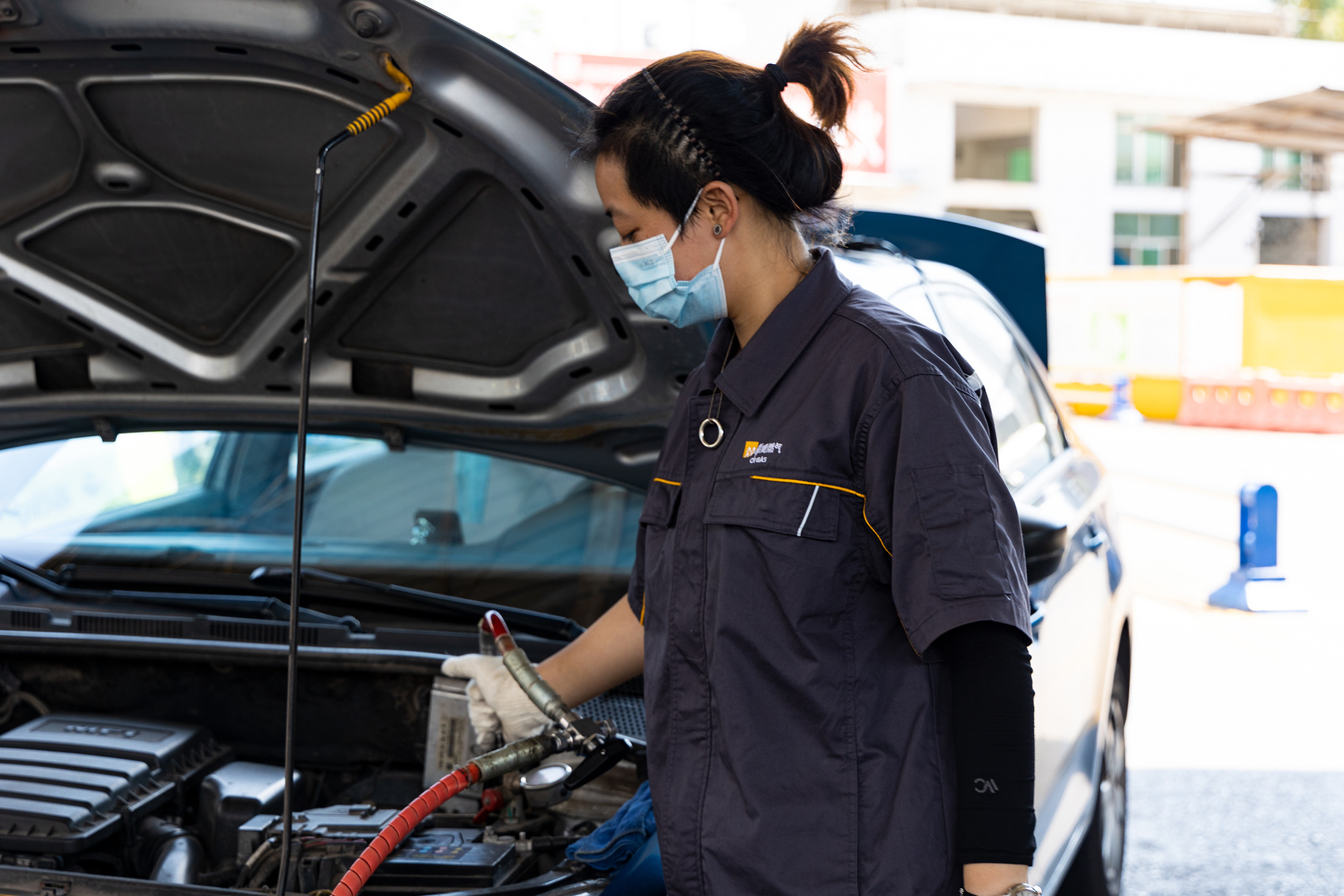 此時,地面溫度已經(jīng)達到60℃,正是在這樣的高溫環(huán)境下,加氣站的工作人員每次打開汽車引擎蓋,就會感覺到強烈的灼熱感。從2001年建站時起,今年50歲的黎德彬在制藥廠加氣站工作了22年,早習慣了蒸和曬。