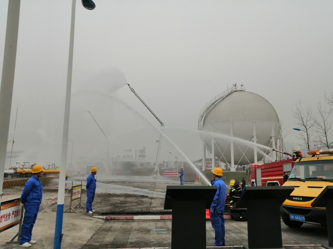 地震發(fā)生后,內(nèi)江公司啟動(dòng)地質(zhì)災(zāi)害專(zhuān)項(xiàng)應(yīng)急預(yù)案,總指揮立即部署應(yīng)急搶險(xiǎn)工作,并要求各部門(mén)立即對(duì)氣源管線、高壓儲(chǔ)配站、城區(qū)干網(wǎng)、重點(diǎn)客戶(hù)開(kāi)展隱患排查處置。受地震影響,城西儲(chǔ)配站工藝區(qū)管網(wǎng)出現(xiàn)泄漏,內(nèi)江華潤(rùn)燃?xì)馀c內(nèi)江市消防救援支隊(duì)立即反應(yīng)、迅速到位、聯(lián)合處置、排除險(xiǎn)情。