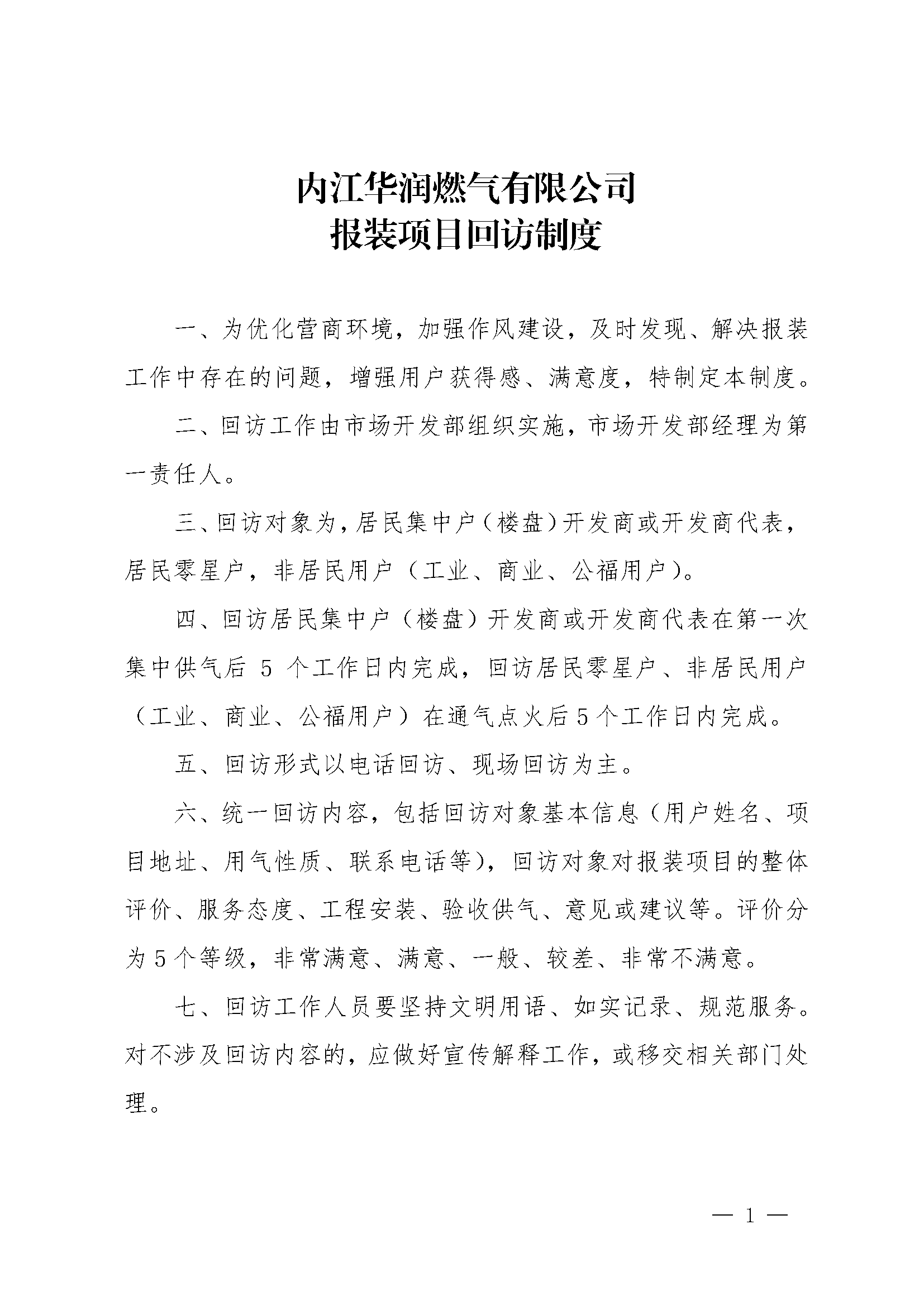 報裝項(xiàng)目回訪制度